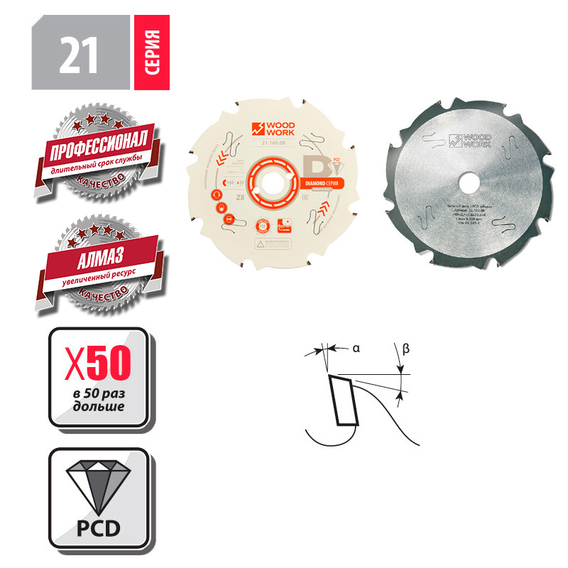 Пильный диск с PCD зубьями 184x2,4x1,6x30 Z=8 Woodwork/Вудворк 21.185.08