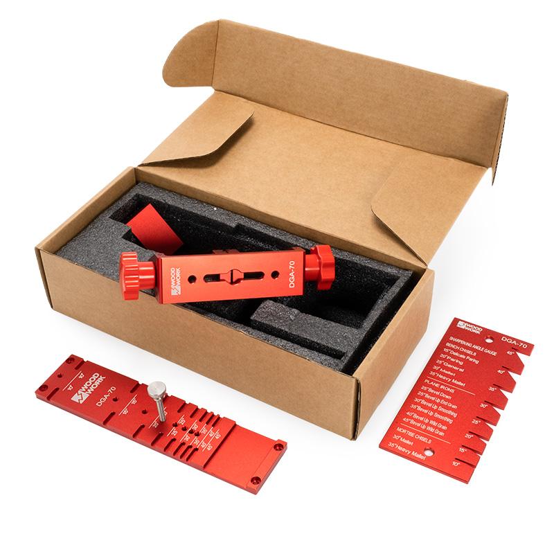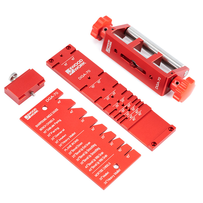 • вместо того чтобы определять угол заточки на глаз, набор для заточки стамесок, долот и лезвий DGA-70 Woodwork/Вудворк оснащен угломером, позволяющим быстро определить угол заточки лезвия