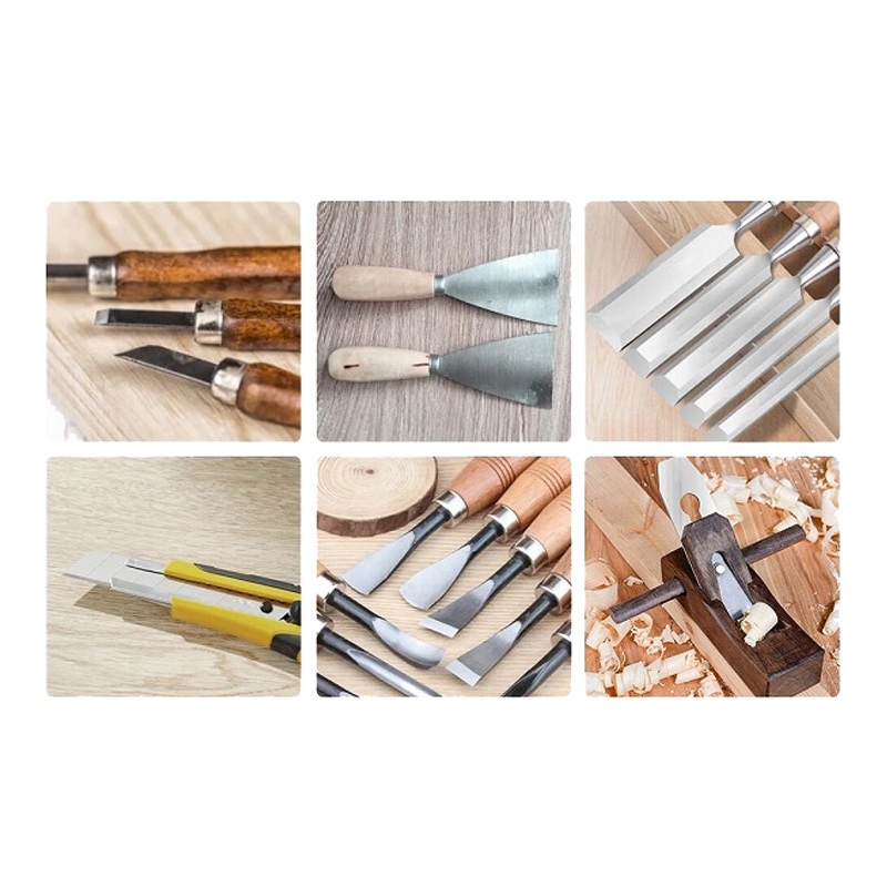 • комплект для заточки стамесок и железок рубанков состоит из направляющей для заточки, угломера (охватывающий диапазон 10°–45°) и приспособления для заточки под прямым и равномерным углом