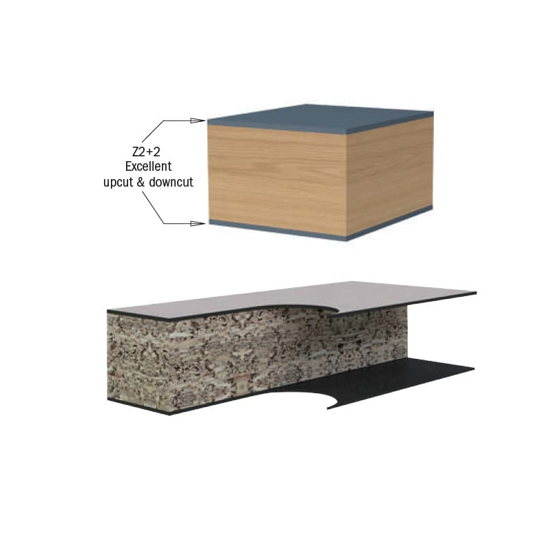 • благодаря уникальной положительной и отрицательной спиральной геометрии исключается расщепление материала с верхней и нижней сторон