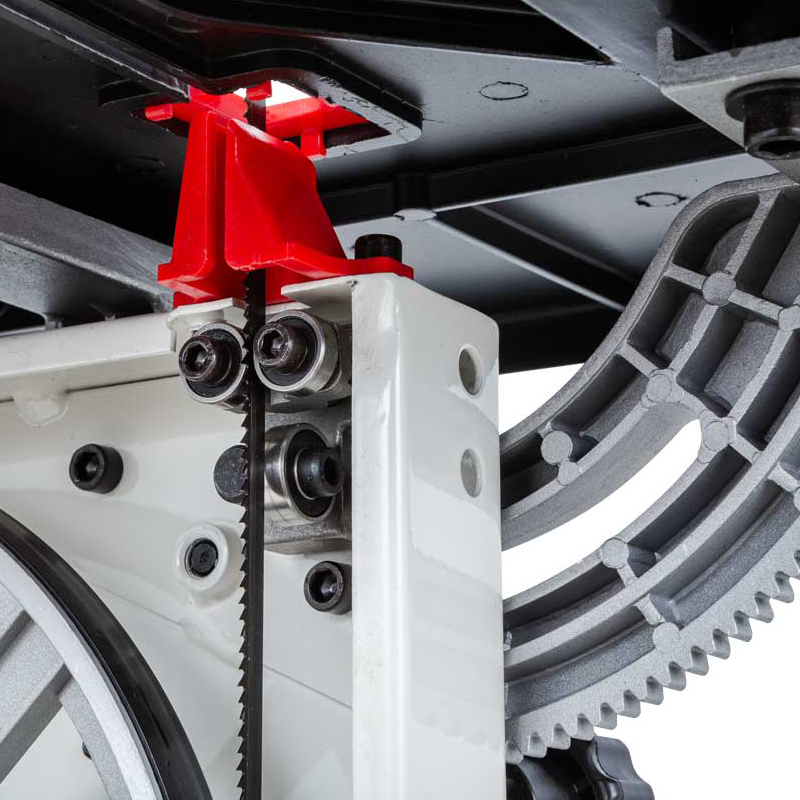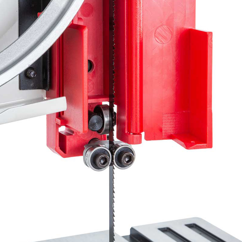 • станок JWBS-9SL обладает трёхролликовой направляющей с шариковыми подшипниками, что обеспечивает свободное движение полотна, минимизирует износ и упрощает настройку