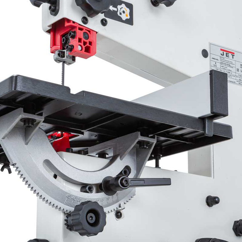 • ленточнопильный станок JWBS-9SL оснащен продуманным эргономичным дизайном: крупные, хорошо захватываемые ручки управления, фиксаторы и зажимы, также имеется патрубок для подключения к системе пылеудаления, предотвращающий скопление стружки в нижней части корпуса
