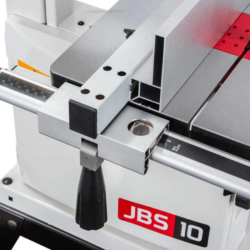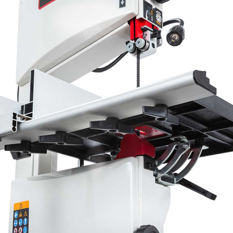 • ленточнопильный станок JWBS-10SL укомплектован двухпозиционным параллельным упором с регулировкой, рабочие поверхности которого различаются по высоте - высокая предназначена для резки толстых деталей под прямым углом к столу, а низкая для наклонного пиления и обработки плоских заготовок