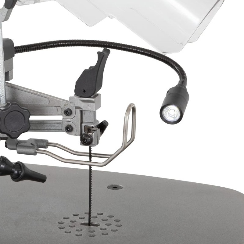 • верхняя часть маятниковой рамы легко поднимается, позволяя быстро вставлять пилку в новое отверстие