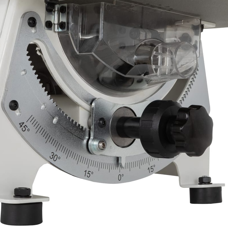 • для выполнения наклонных пропилов предусмотрена возможность наклона всего маятникового механизма - для этого в основании станка с обеих сторон установлены стальные зубчатые полукольца