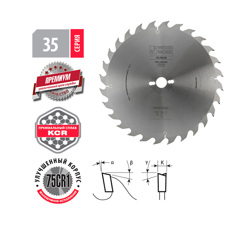 • пильные диски для продольного реза для пильных станков Серия 35 Премиум Woodwork/Вудворк - это высококачественная линейка универсальных пильных дисков для промышленных предприятий