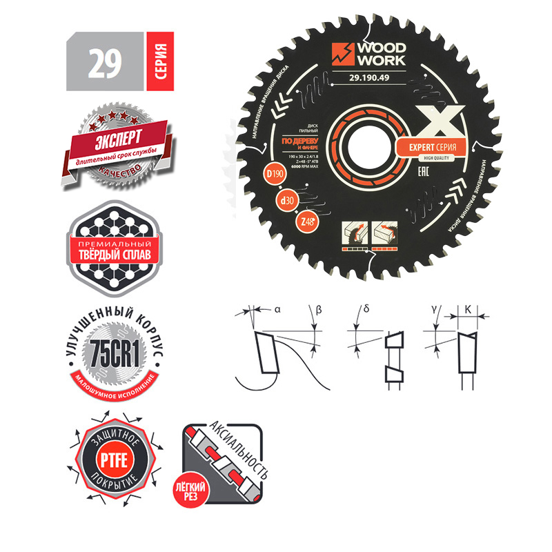 • пильные диски Серия 29 Эксперт Woodwork/Вудворк это профессиональные пильные диски премиального качества c улучшенным корпусом для продольного и поперечного пиления древесных материалов