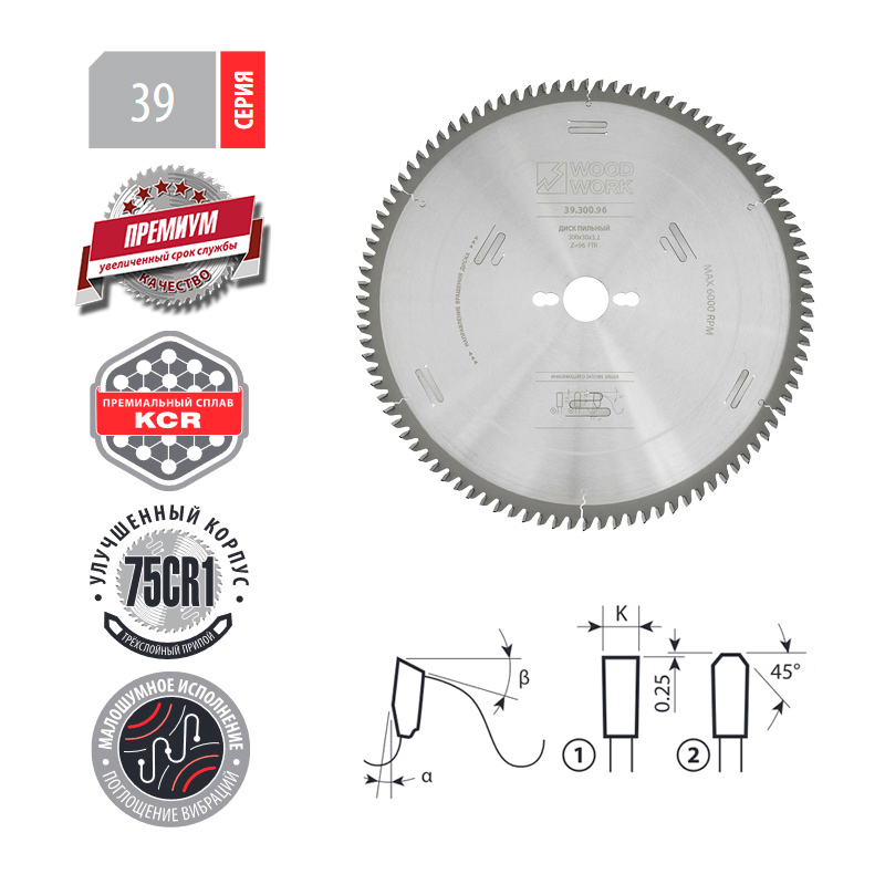 Пильные диски для ЛДСП и МДФ с увеличенным ресурсом Серия 39 Премиум Woodwork/Вудворк