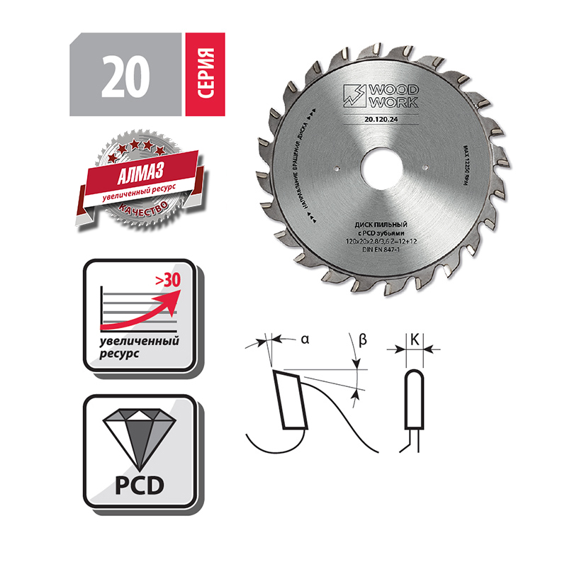 Подрезные пильные диски PCD (с зубьями из поликристаллического алмаза) Серия 20 Woodwork/Вудворк
