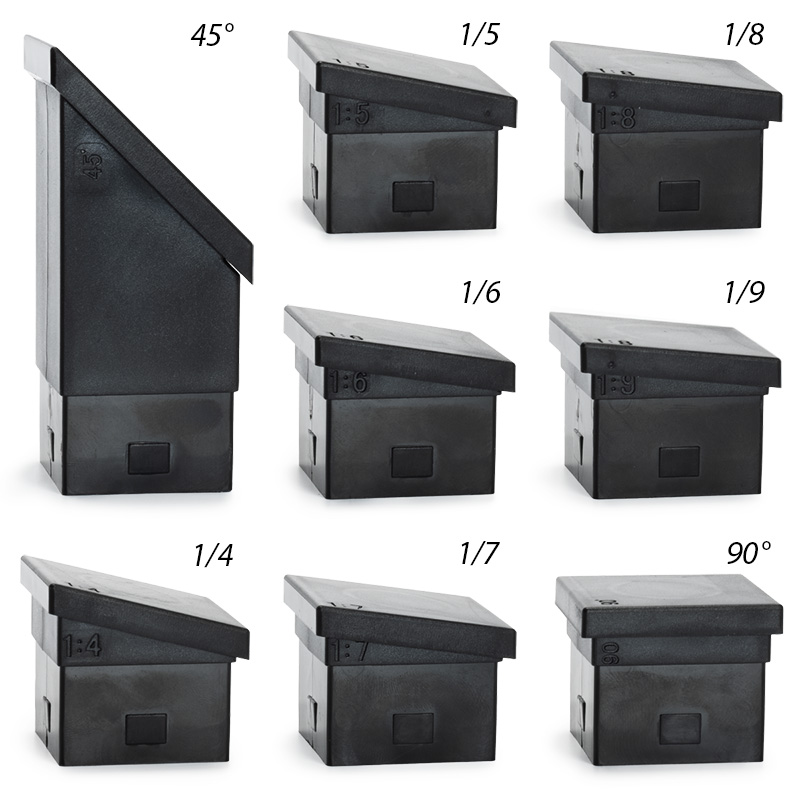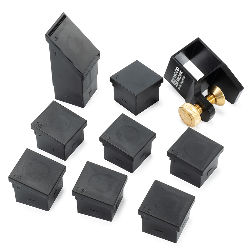 Направляющие шаблоны для пиления под углом для соединения "ласточкин хвост"• для шиповых соединений с углом наклона шипа (1:4,1:5,1:6,1:7,1:8,1:9) и углов 45°и 90°