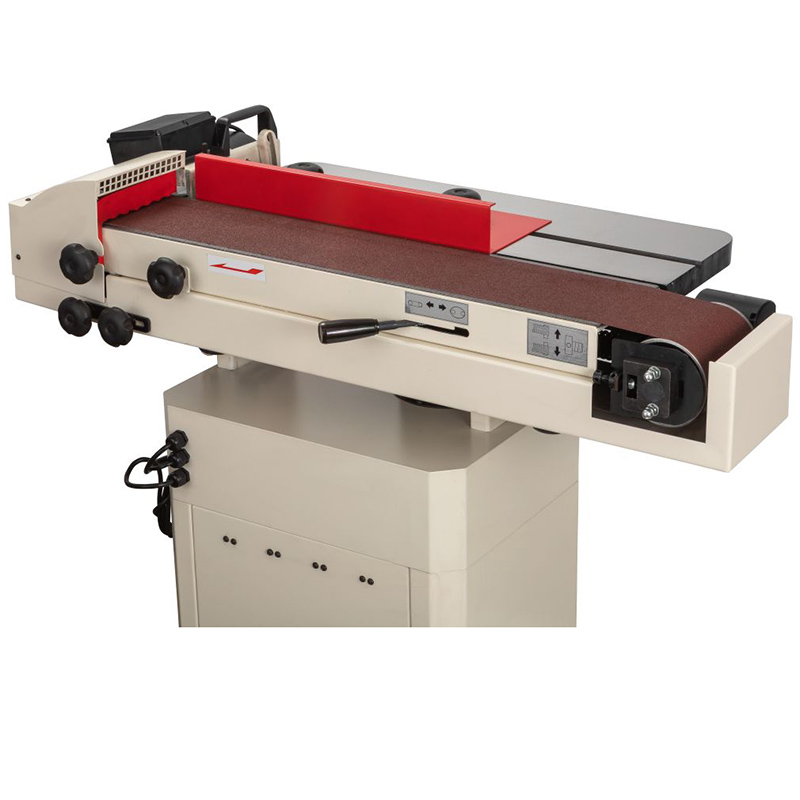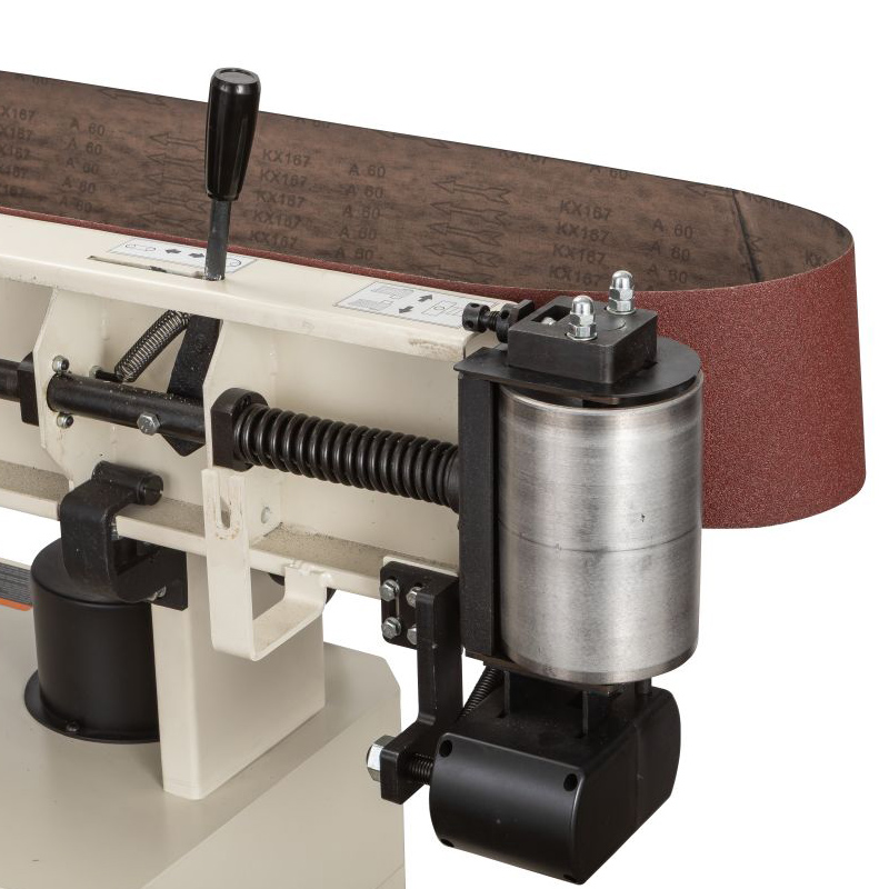 • основной рабочий стол, выполненный из чугунного литья, имеет регулировку по высоте, что позволяет выровнять его поверхность с плоскостью горизонтально расположенной ленты или задействовать полную ширину абразивной ленты при работе в вертикальном режиме