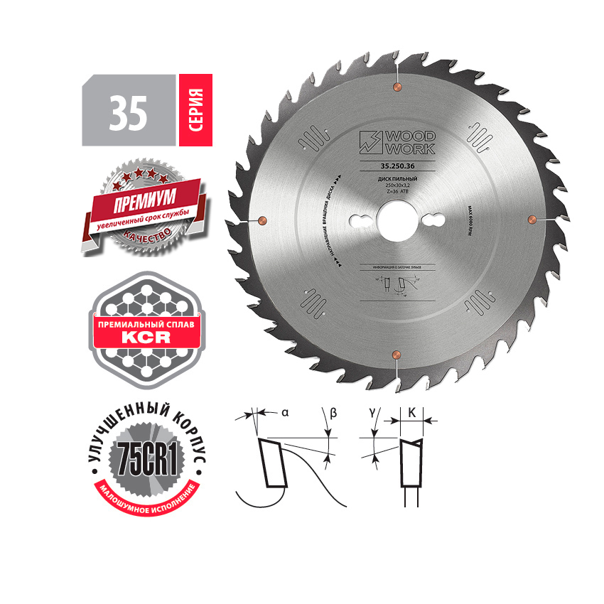 • пильные диски для продольного и поперечного реза для пильных станков Серия 35 Премиум Woodwork/Вудворк - это высококачественная линейка универсальных пильных дисков для промышленных предприятий