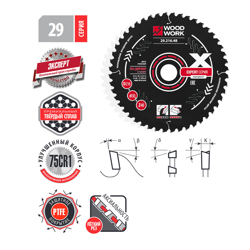 • пильные диски для продольного и поперечного реза дерева Серия 29 Эксперт Woodwork/Вудворк - это профессиональные пильные диски премиального качества
