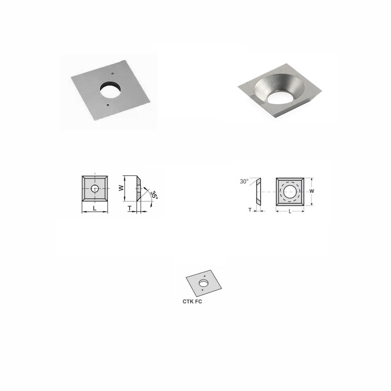 Ножи сменные твердосплавные 4 режущие кромки 1 отверстие CTK FC квадратные